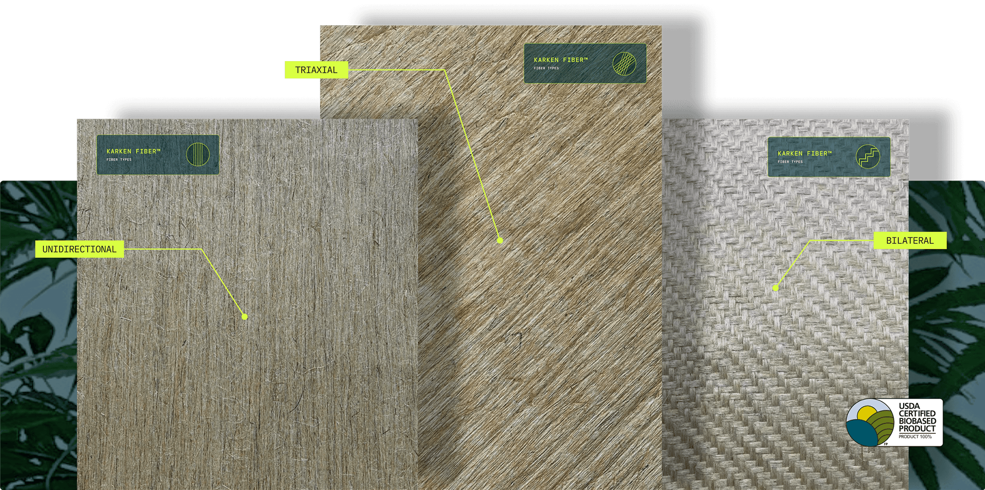 Natural-fiber reinforcements with lower embodied CO₂e than fiberglass. Independent LCA available on request.